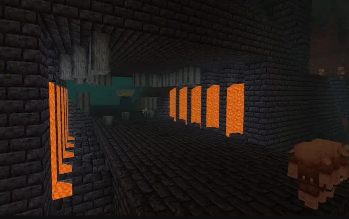 You'll know you're in a hoglin stables bastion because of the open pens and, well, the hoglins. This variant has three rampart structures, which is unique to this type. The combination of piglins and hoglins fighting each other (and you) makes this one chaotic. Lots of food loot (cooked porkchops for days), and some decent gear in the chests.