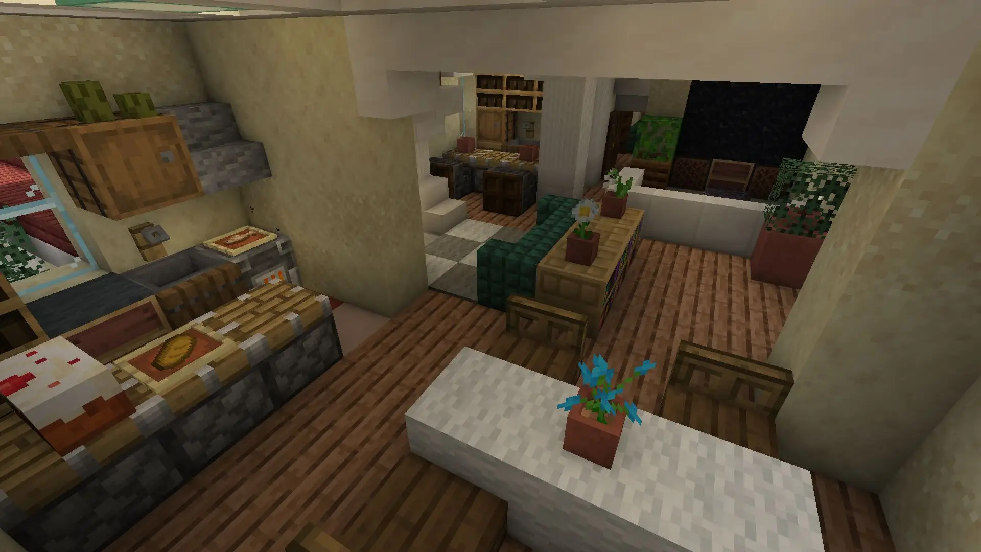 Elegant neo classical Italian style villa, a highly detailed Minecraft build. This luxurious villa is fully furnished and showcases a courtyard in the back, surrounded by a wall with Renaissance style gardens, pathways, pools, and decorative fountains inside. Every part reflects balance, symmetry, and fine detailing which was very typical of the Renaissance era. Built for creative worlds, this build is great for players who enjoy realistic architecture, city projects, or Mediterranean themed worlds.