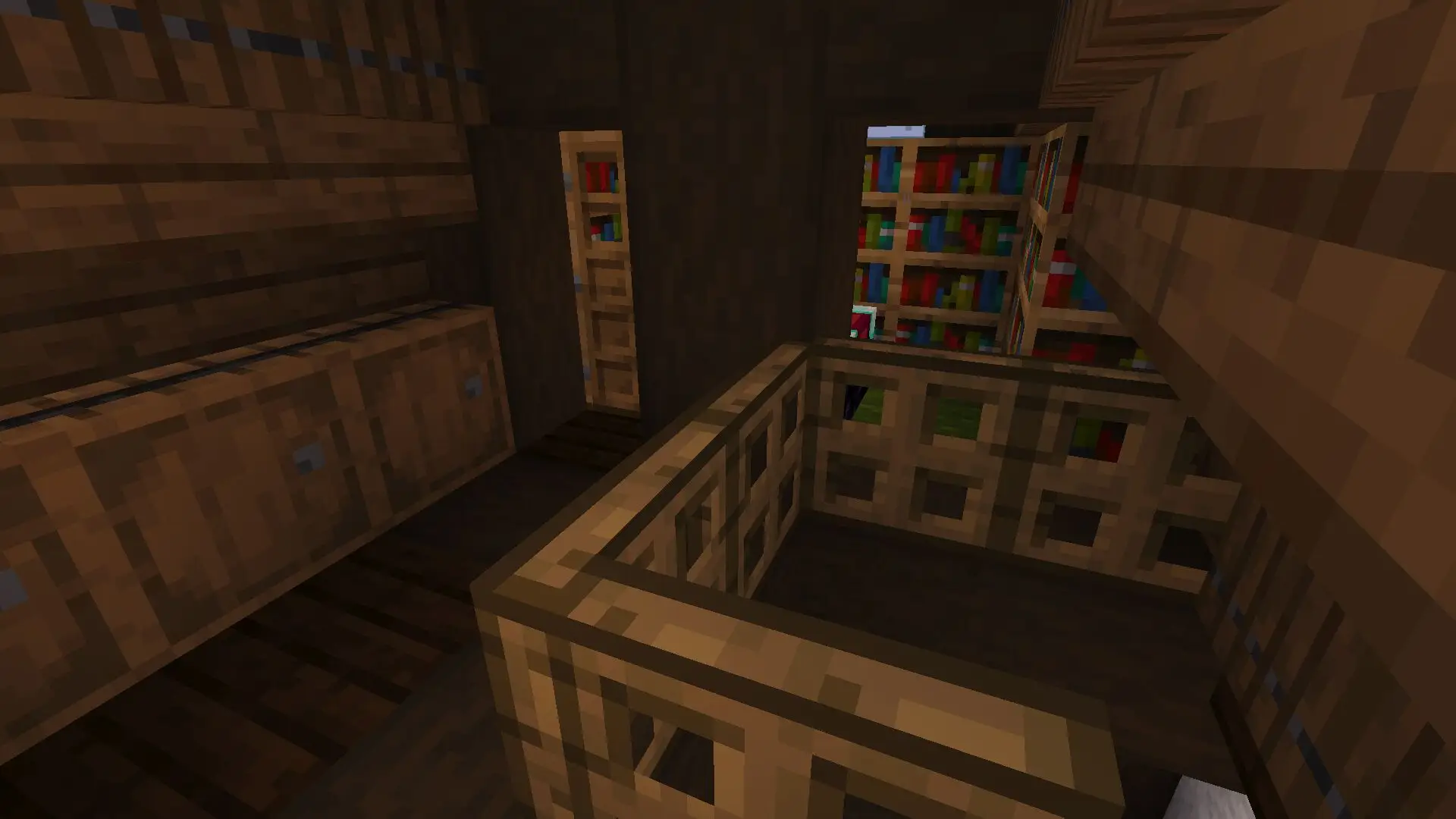 This Minecraft medieval style cottage is a compact, rustic, fully furnished house, with lots of details built specifically for survival gameplay. Next to it, there is a wheat field and a path that leads down to a small pier and a boat attached to it. As you enter a house, you’ll find a small kitchen and dining area. There is a staircase leading down to a cozy storage room, while another set of stairs takes you up to the bedroom with a small study area. A final staircase continues to the attic, where the enchanting room is located along with some additional storage space.