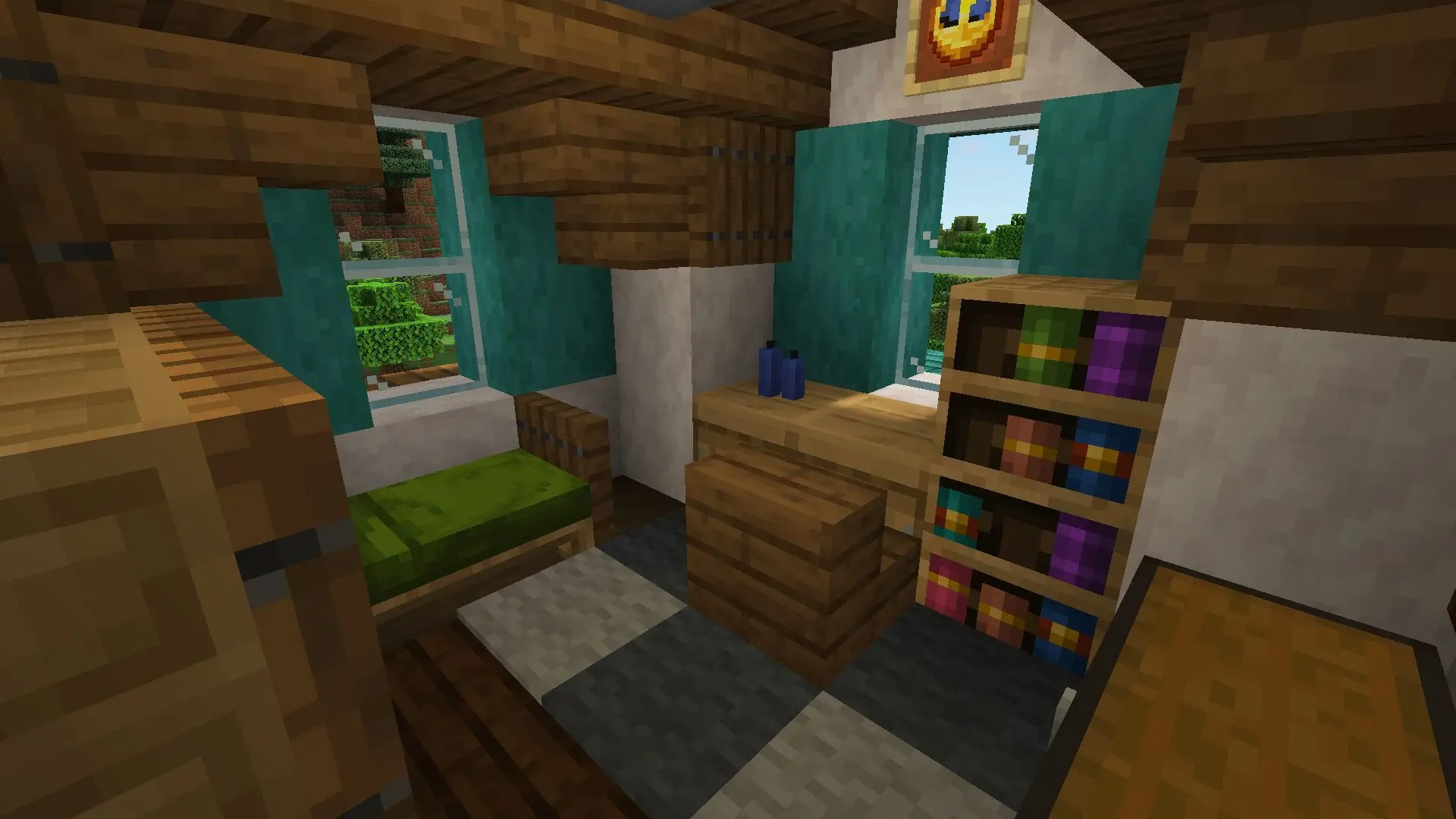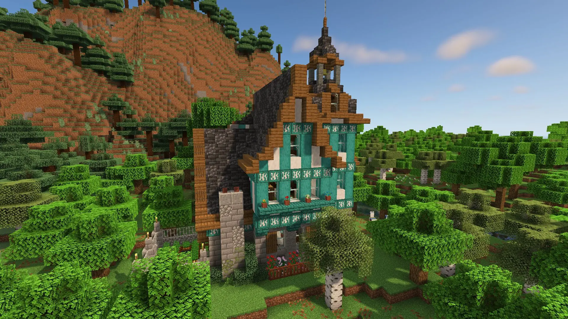 Built for survival gamemode. On the first floor, you’ll find a nice entrance with a small storage area, a warm fireplace room, a dining area, a kitchen, and a bathroom. On the second floor, there is a comfortable bedroom, a living/reading room, and additional storage space. Continuing upstairs, you will find another bedroom, and when you finally reach the top floor, there is a quiet study and an enchanting room, ideal for any Minecraft player. The house also comes with some essential items to help you get started quickly.