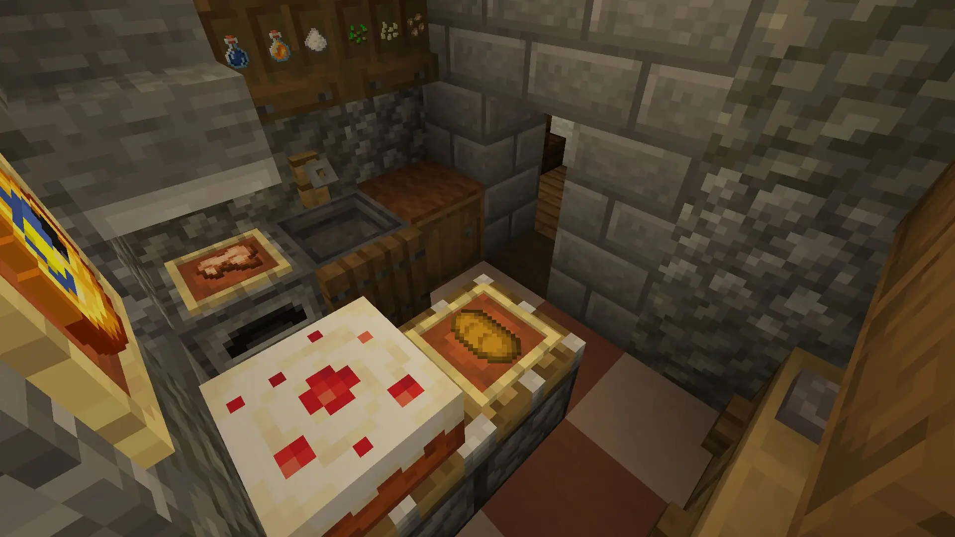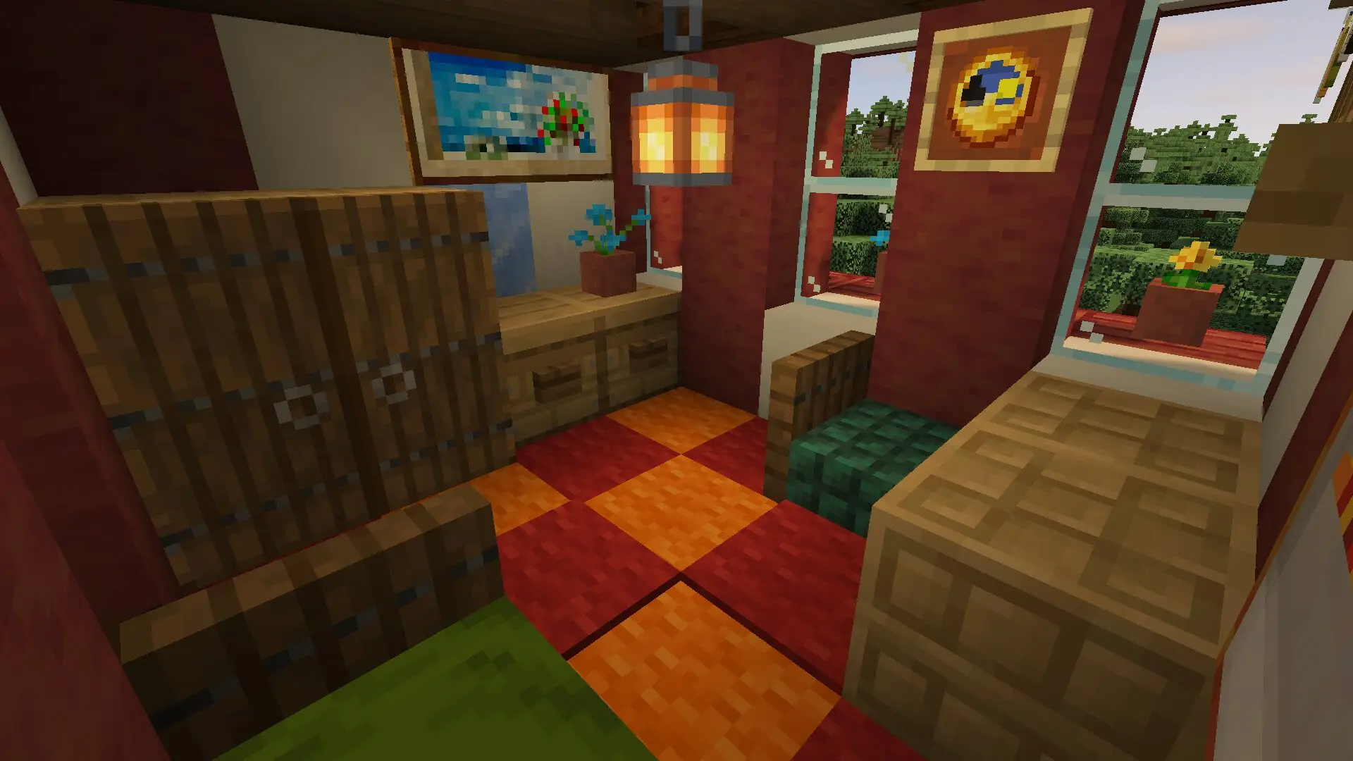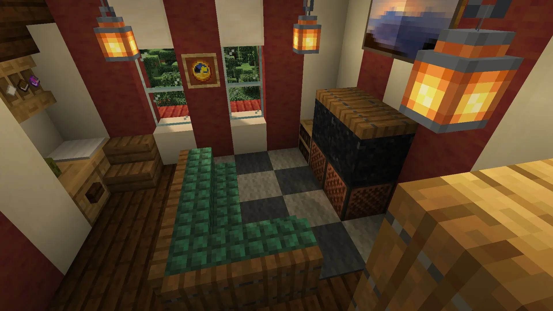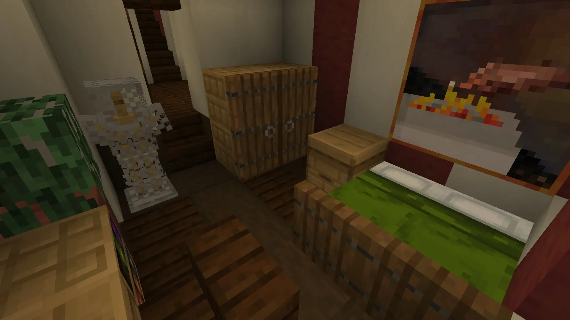 Welcome to a new Half-Timbered cottage built for survival mode. This time, mangrove logs and trapdoors were used to achieve a "timber-frame" look, since Minecraft doesn’t have actual timber-framed blocks yet unless you use a texture pack. Hopefully, Mojang adds them one day. The house is fully furnished. On the first floor, there’s a nice fireplace room, dining area, kitchen, and small bathroom a level below. The second floor has a small library, two bedrooms, and a living room. On the way going up again, you’ll find another small room with a bed, desk, bookshelves. On the final third floor you'll find an enchanting room, a small storage area, and another study/bedroom. Inside, you will also find some essential items to help you get started.