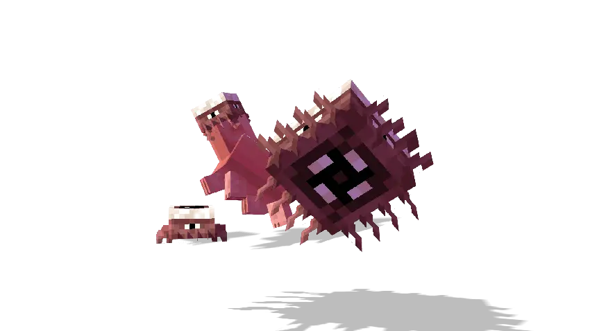 ・ Having a close resemblance to the sensory organs, Eyecletches are (what can only be assumed they are) eerie flesh arthropods that feed off of the eyesight of other fauna, leaving them temporarily blind until they consume all of its victim. Like its name suggests, upon finding its victim, the walking pupil will try to jump into its face to inflict damage, so it's recommended to keep distance from these creatures.