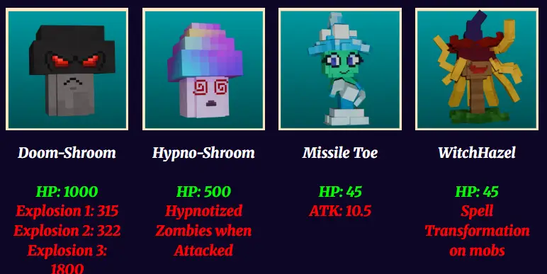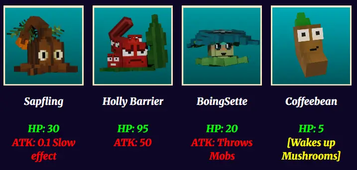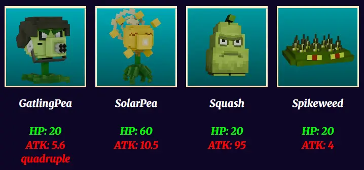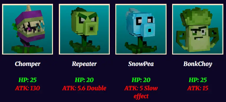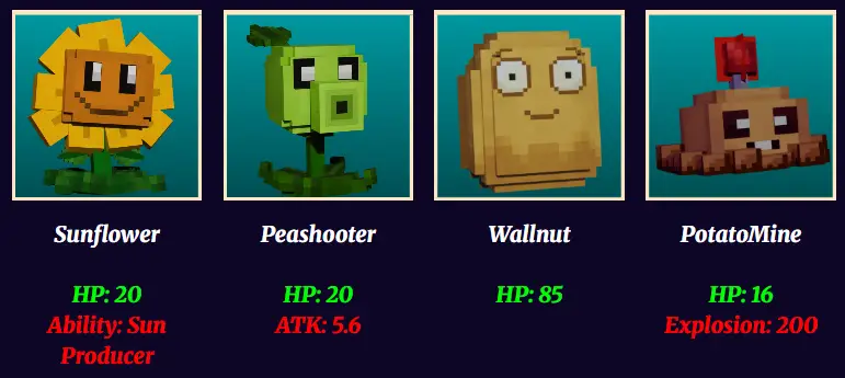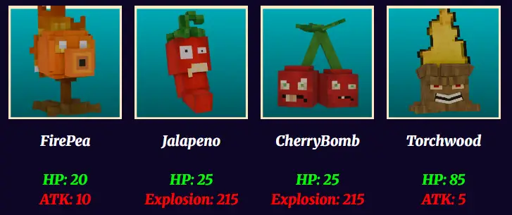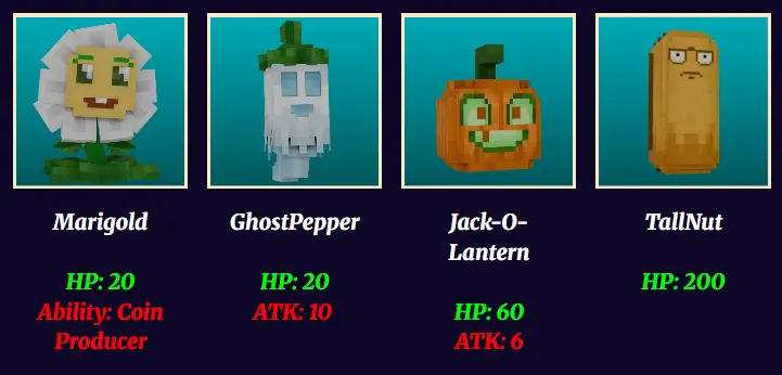 Each Plants have their own abilities like solarpea, ghostpepper, and jack-o-lantern when close range