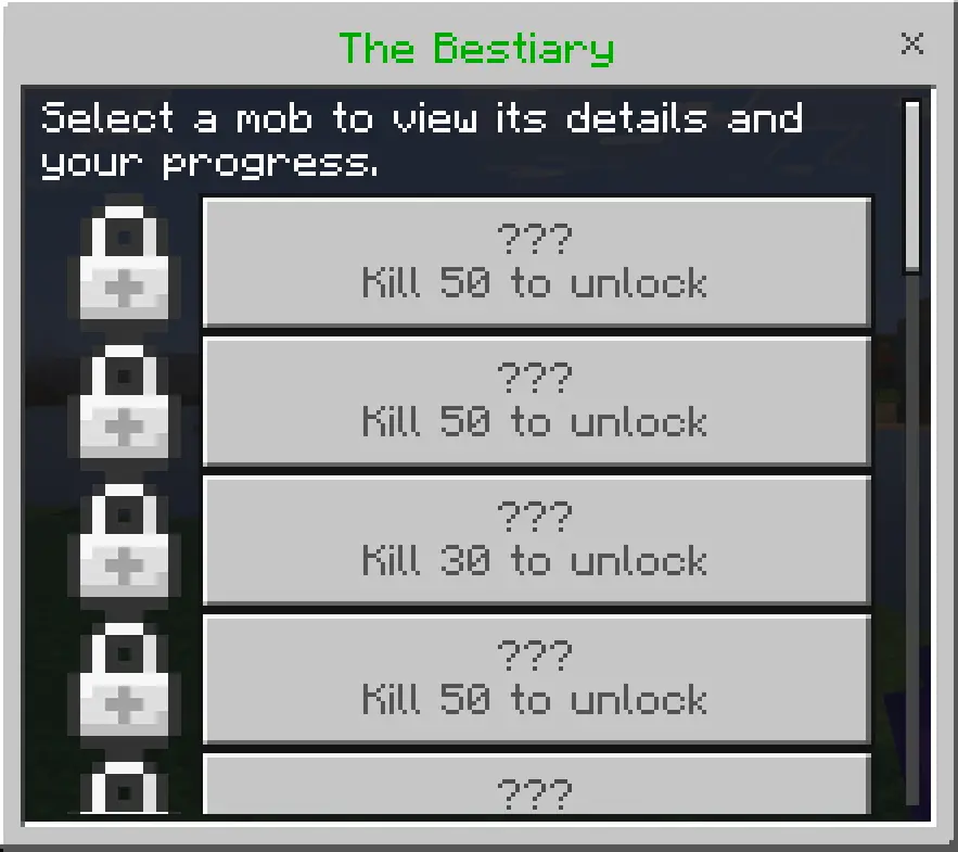 - Reach the mastery kill count for a mob to unlock a permanent special buff that activates whenever you kill one of them.