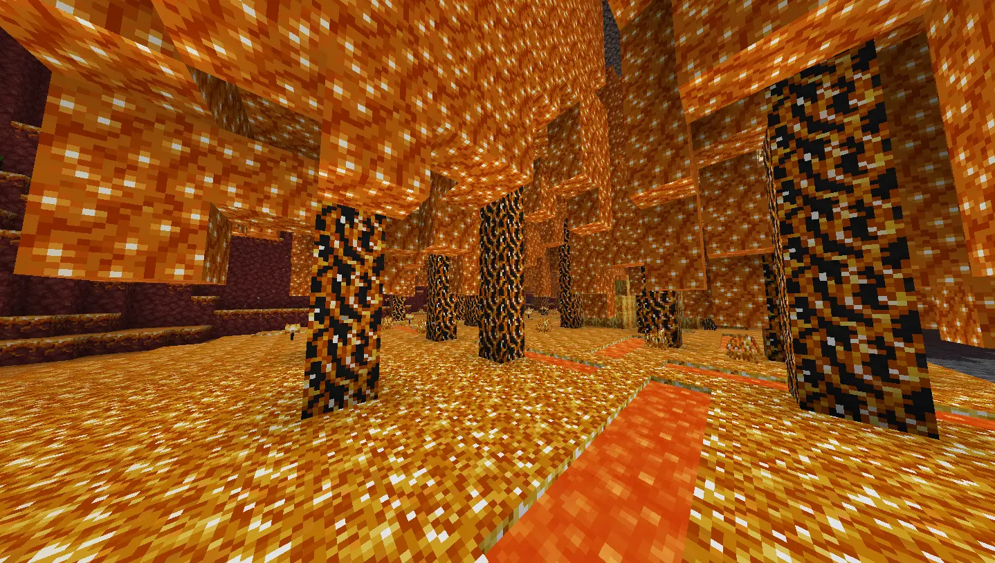 Burning Forest: are dominated by burning nylium and burning roots, and their habitat is inhabited by blazes and magma cubes.