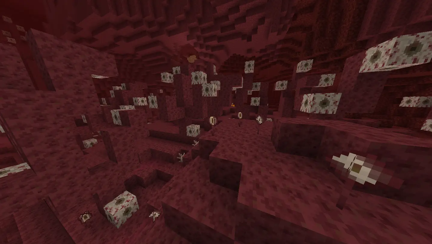Flesh Combs: contain lakes of blood and dense fields of living flesh, where the player encounters zombie piglins and zoglins.