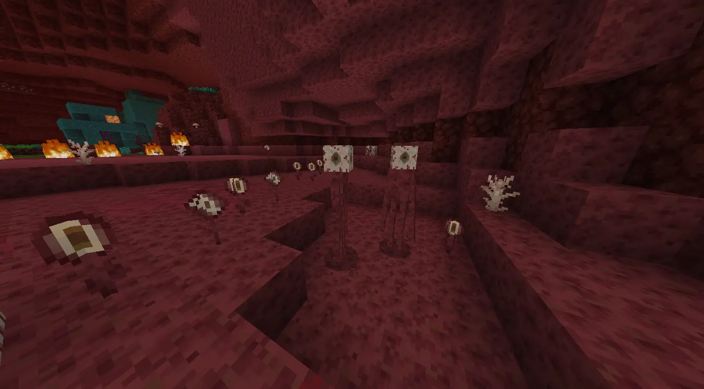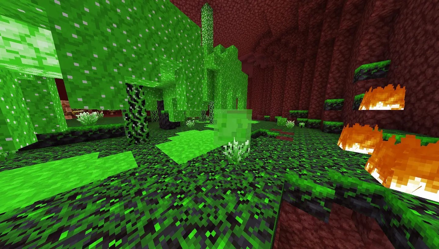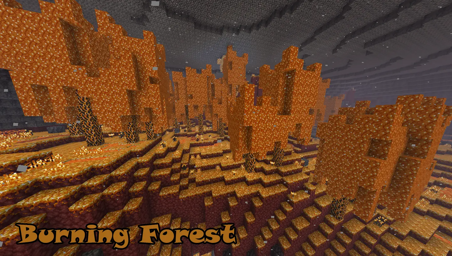 Burning Forest: Composed of Burning Nylium blocks, this biome features many fire patches and is inhabited by Blazes and Magma Cubes!