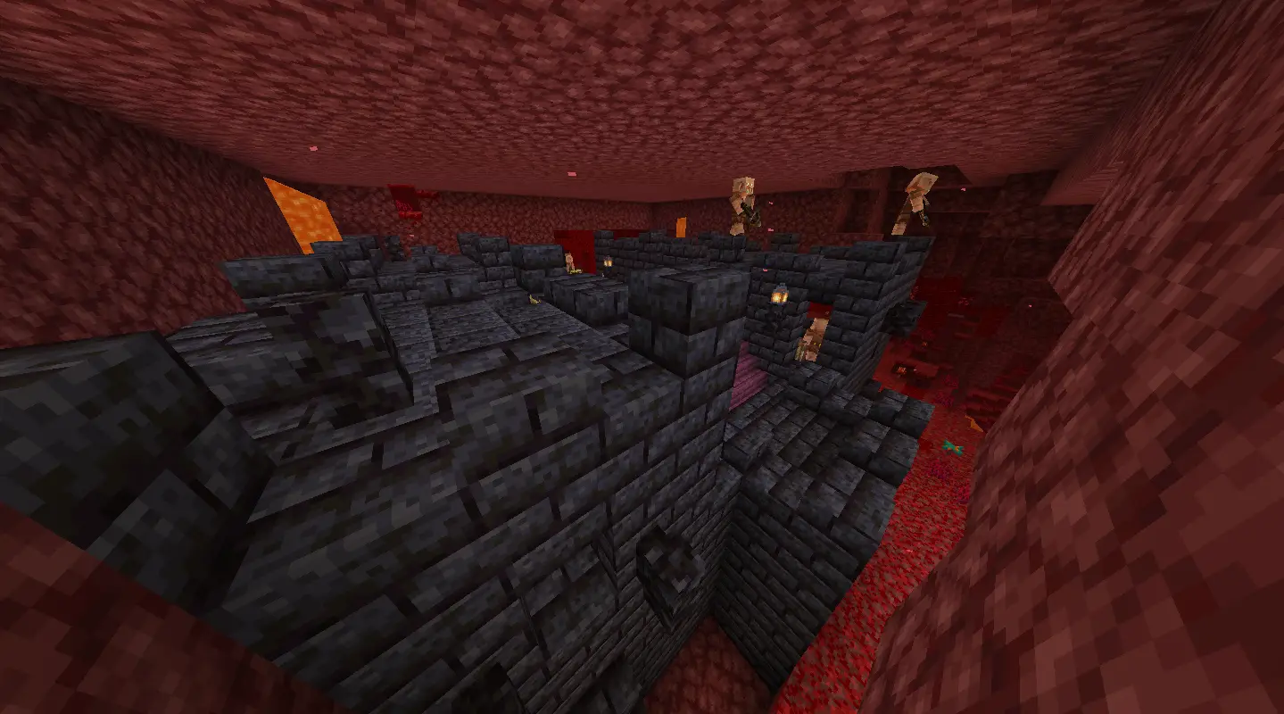 Out of the 14 structures, 6 are inhabited by piglins and are specifically generated in the Crimson Forest, Nether Wastes, and Basalt Deltas. These structures feel like true piglin castles, reinforcing their presence and dominance in these biomes.