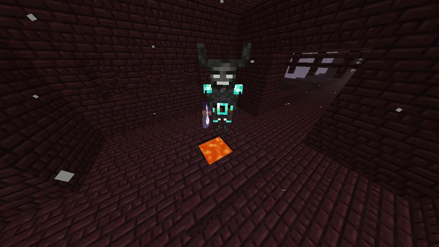 Wither Skeleton Brute: They have 75 health points, It has 50% knockback resistance. When he has less than 50% of his health he will turn light blue and gain 25% more knockback resistance and immunity to damage caused by projectiles, in addition to gaining additional speed! Upon death it has a 2.5% chance of dropping its skull, you can use it to summon the new boss, the Nether King. You can find it in the Nether Fortresses!