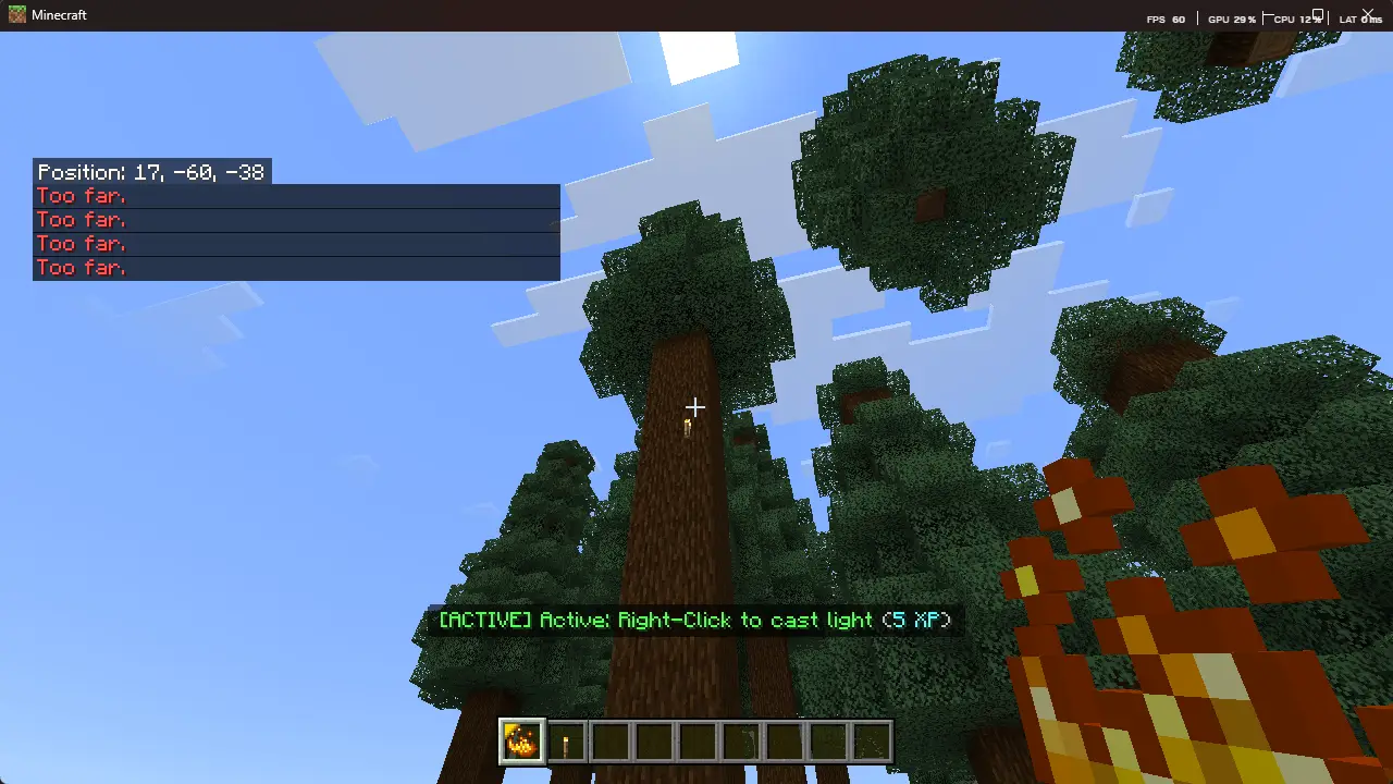 - Light Caster Mode — place torches at a distance without opening your inventory.