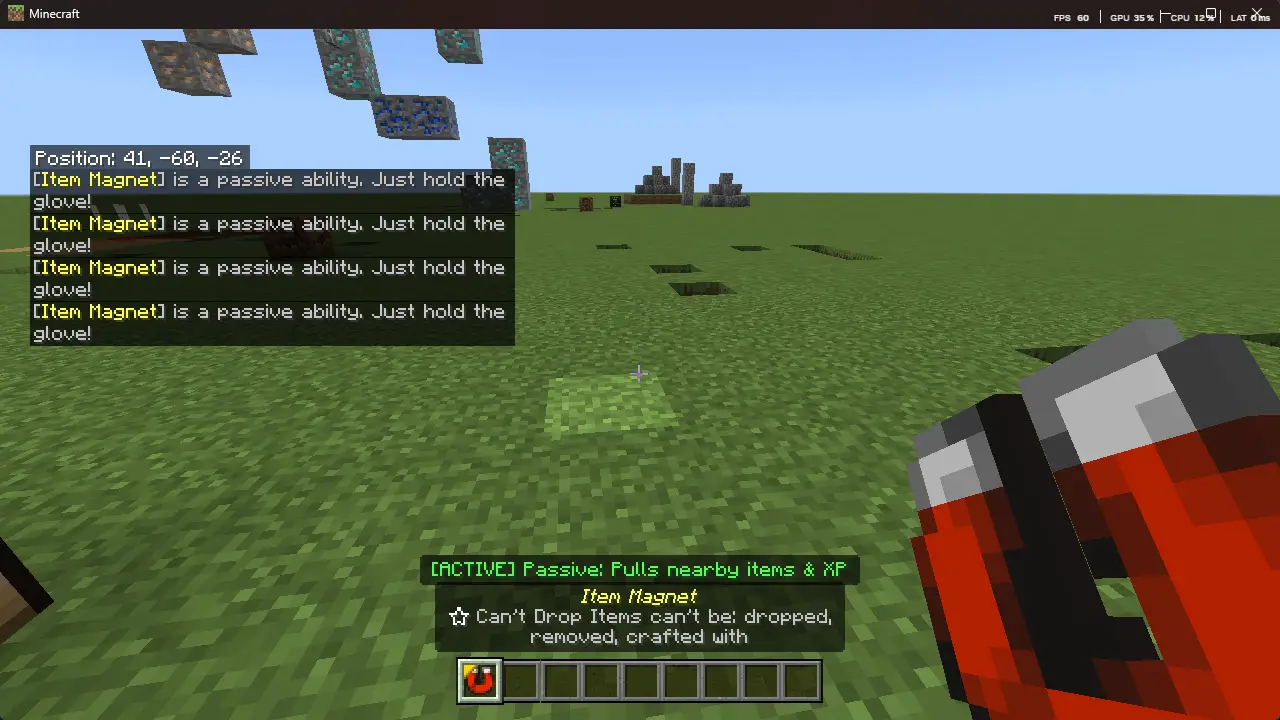 - Item Magnet Mode — pulls nearby dropped items and XP orbs toward the player automatically.