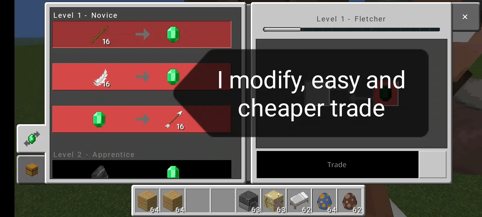 Experience Java Edition healing mechanics! This addon brings Java Saturation, 64 Item Stacking (Potions/Pearls), No Rain Particles, Visible Villager Trades, Quick Crafting, and OP Wandering Traders. No experiments required!