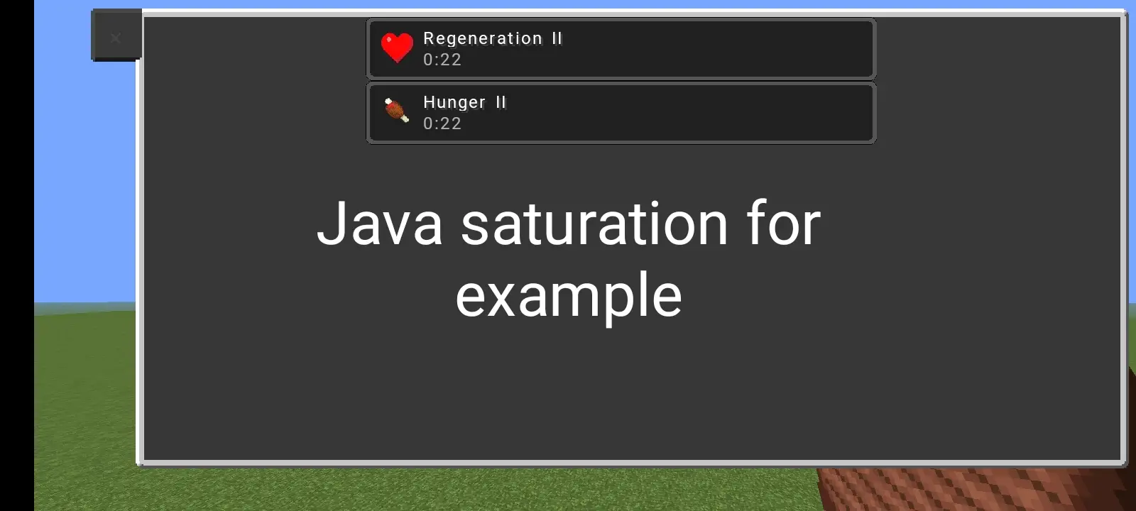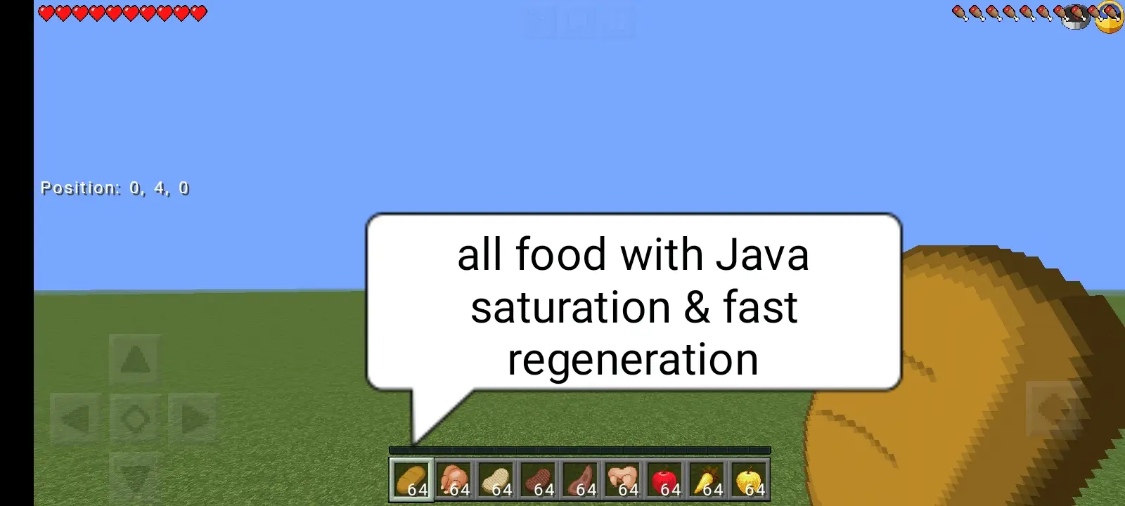 Khana khane par Java Edition ki tarah tezi se health recover hoti hai.