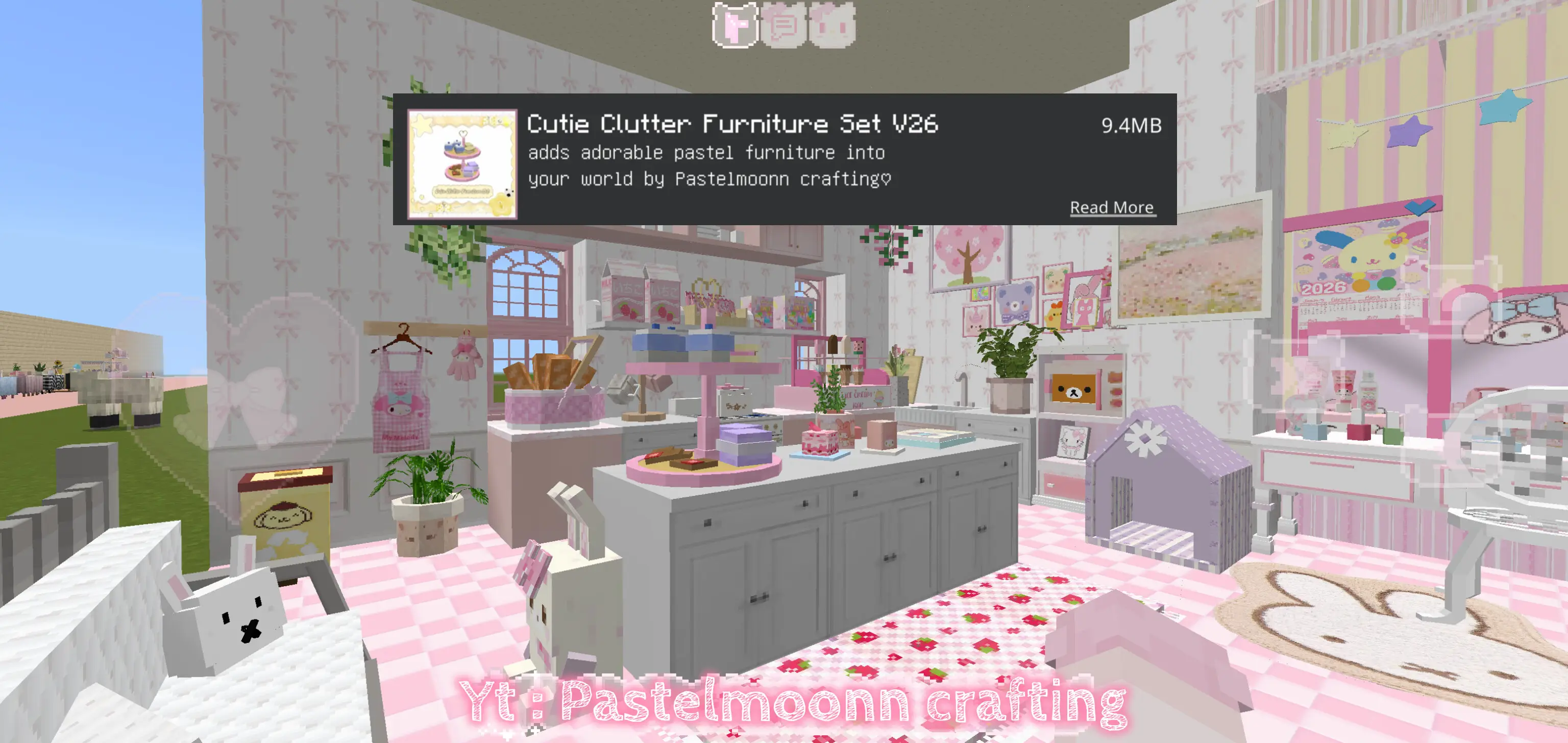 Get ready to sprinkle some magic into your world with the Cutie Clutter Furniture Set! 🌸✨𓍯𓂃𓏧♡ This mod brings the cutest pastel furniture, decor, and craftable items to Minecraft. Available for 1.21.130+ (Latest V26). Decorate with fluffy beds, adorable tables, shelves, and charming accessories — perfect for Creative and Survival play. 💖
