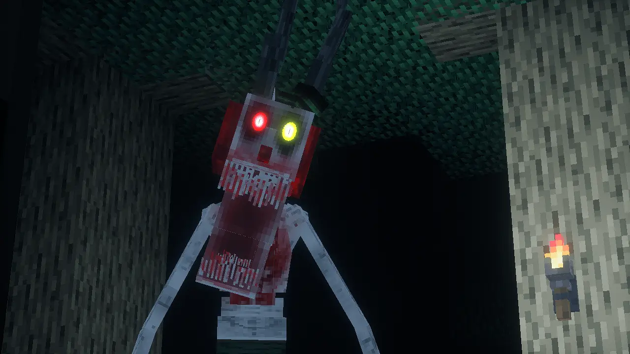Jacky the Clown (Distorted Clown / Dweller) is a terrifying hunting mob addon that relentlessly chases players with glowing eyes, scary animations and sounds — a brutal challenge for survival fans.