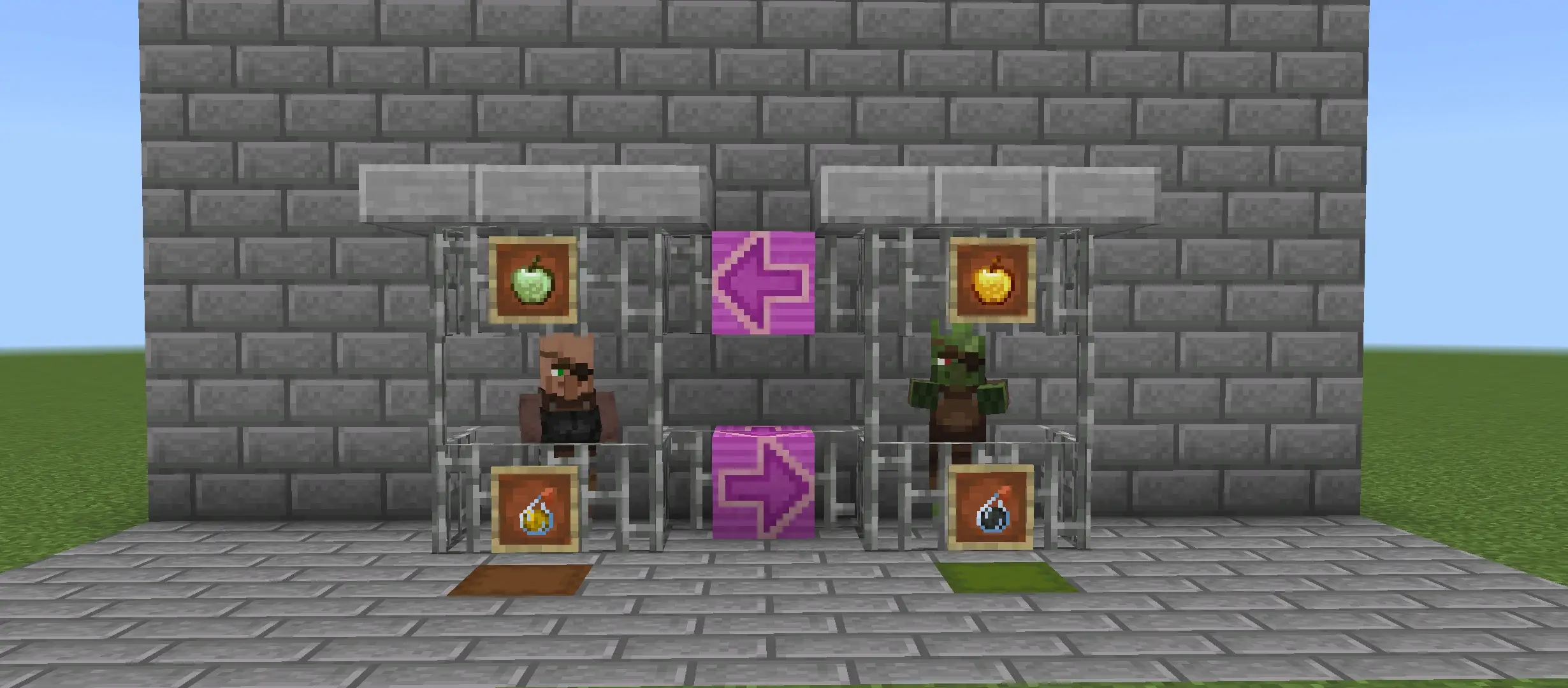 - Effect on entity: Villager receives Weakness (inverse of vanilla)