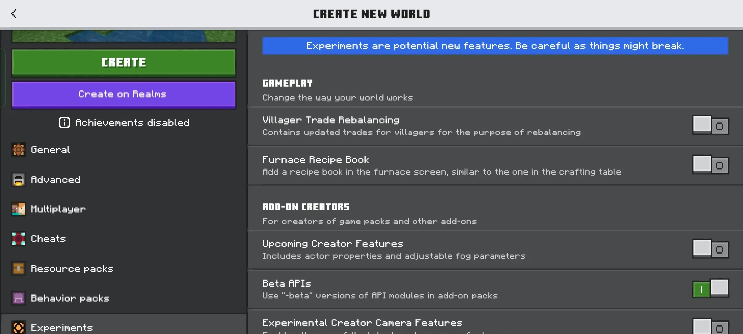 To use this addon, enable Beta APIs.