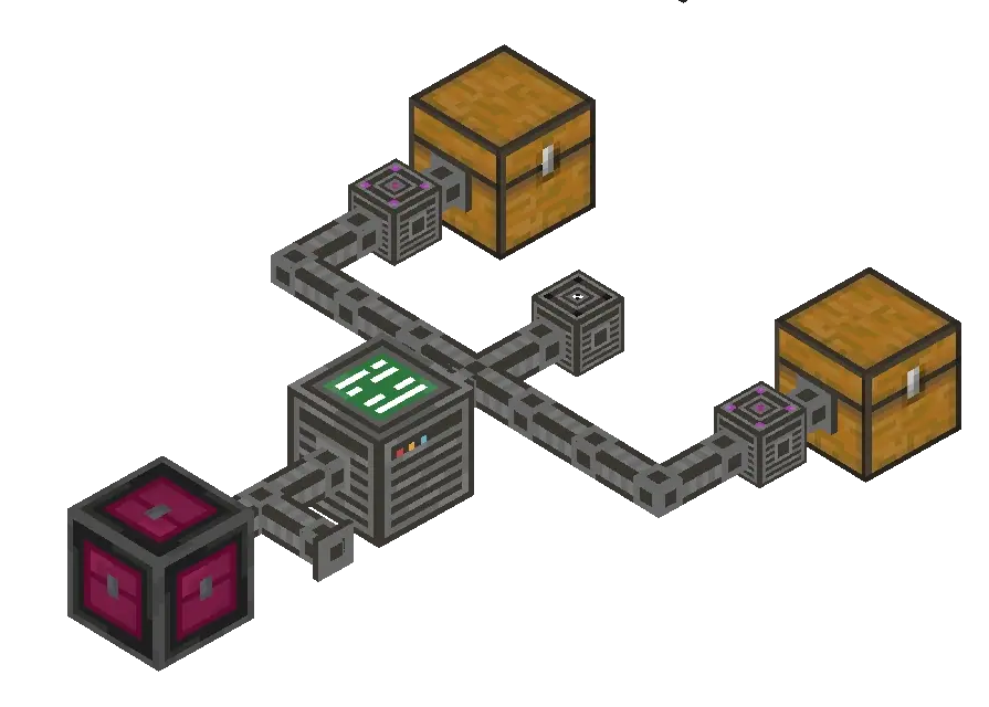 The Indexer system is easy to set up and very intuitive. First, place the Indexer Controller (the system's CPU); every pipe in your network must be connected to this controller by at least one line. From there, it’s as simple as laying down pipes and attaching containers—whether they're chests, barrels, or furnaces. To link a container to a pipe, just use a Connector block. The top of the connector will turn pink if it's connected and black if it’s disconnected.