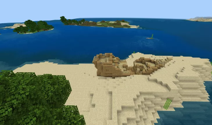 This seed spawns you in a coastal village with four blacksmiths, which means a serious amount of starting loot. You can gear up with iron tools, armor, and potentially diamonds before you even leave the village. The village sits right on the ocean edge, so you have water access from the start.