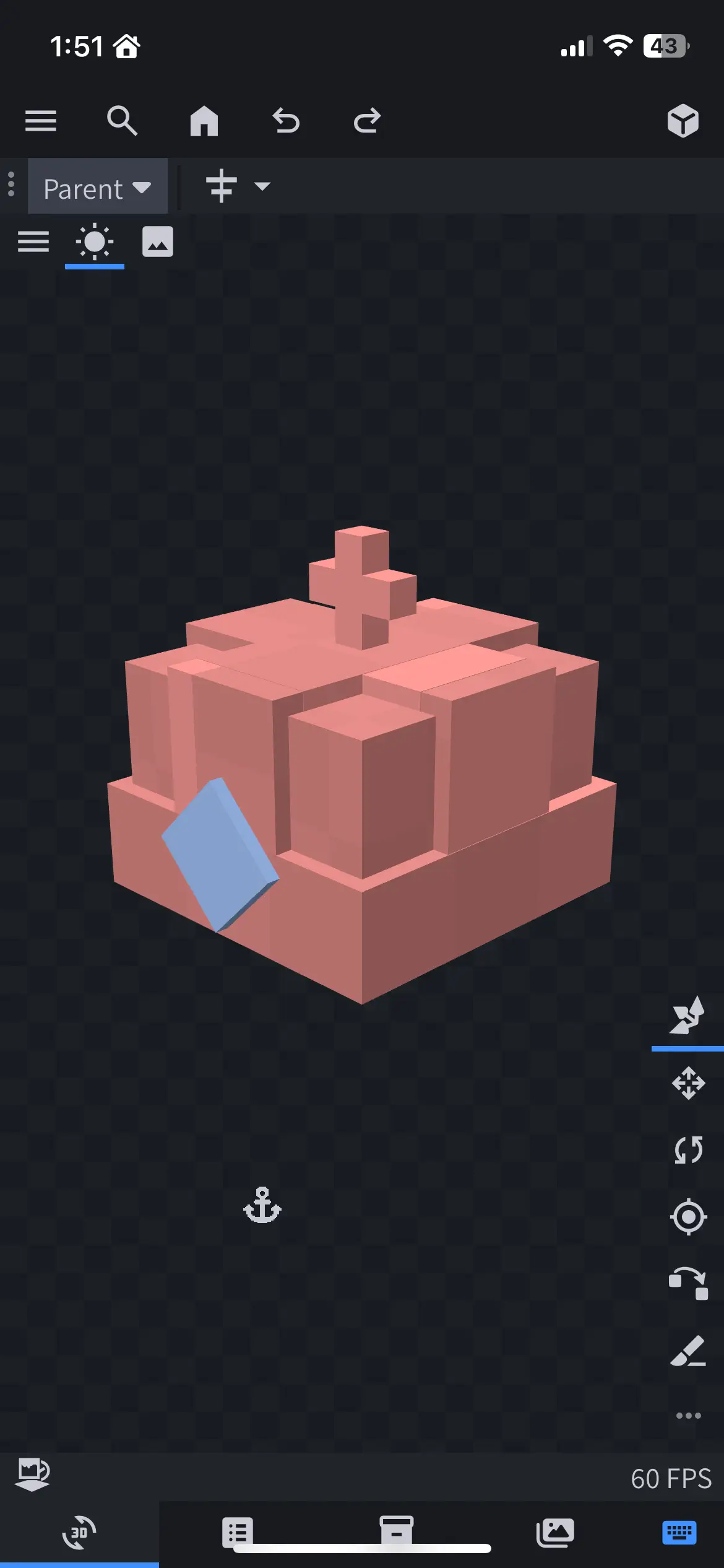 1. Either import your model onto blockbench, or use a text editor to open your model. The crown model in the cosmetic pack will be used in this tutorial with blockbench as the easier option.