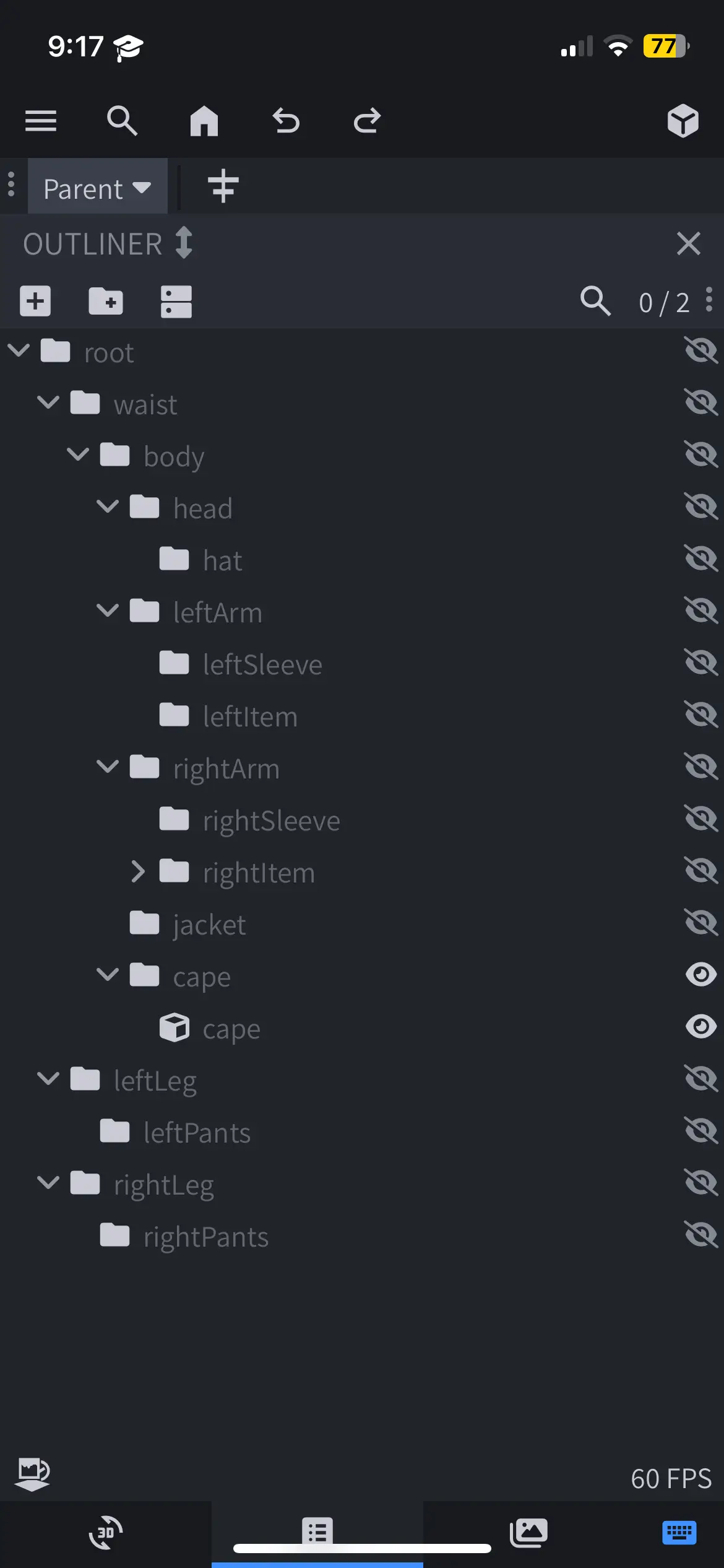 - Do not remove any of the bones as this can cause issues. Bones are marked as folders inside Blockbench.