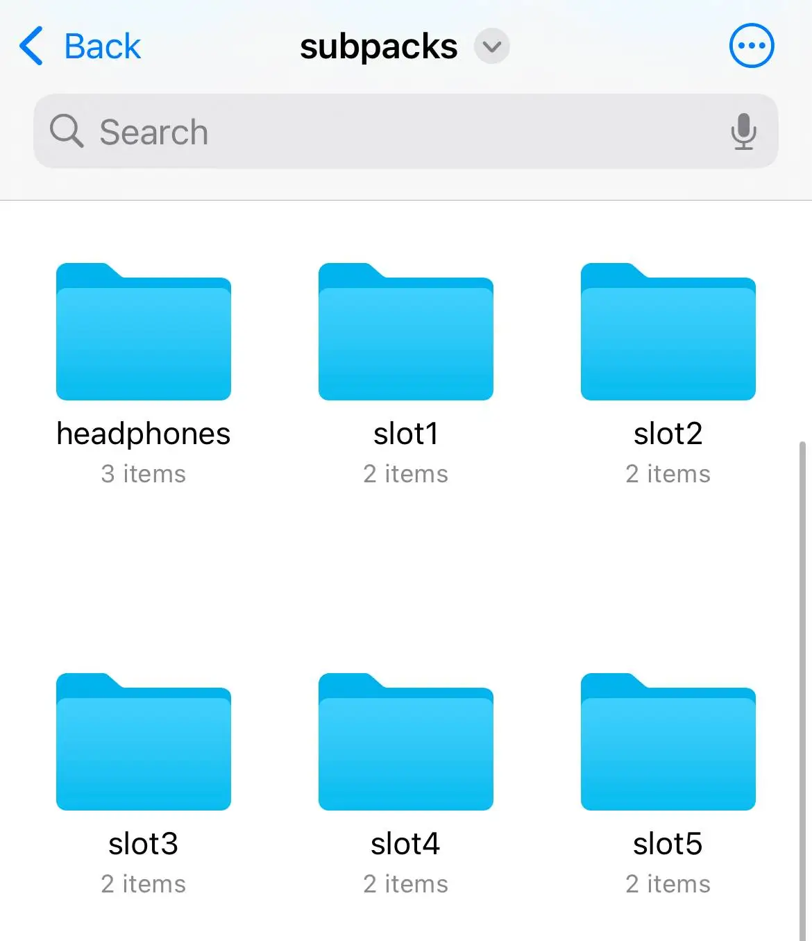 2. Inside the pack’s contents, select a custom slot inside the “subpack” folder. These slots are numbered from 1 to 6. For this tutorial, I will use slot 1.