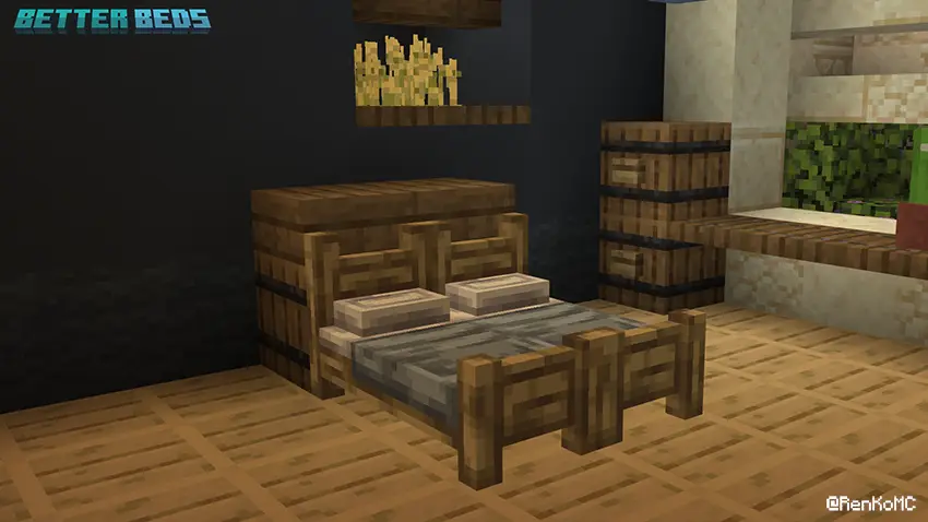Better Beds improves Minecraft beds by adding new models, textures, and colors, giving it a more modern and updated design while maintaining the original style of the game.