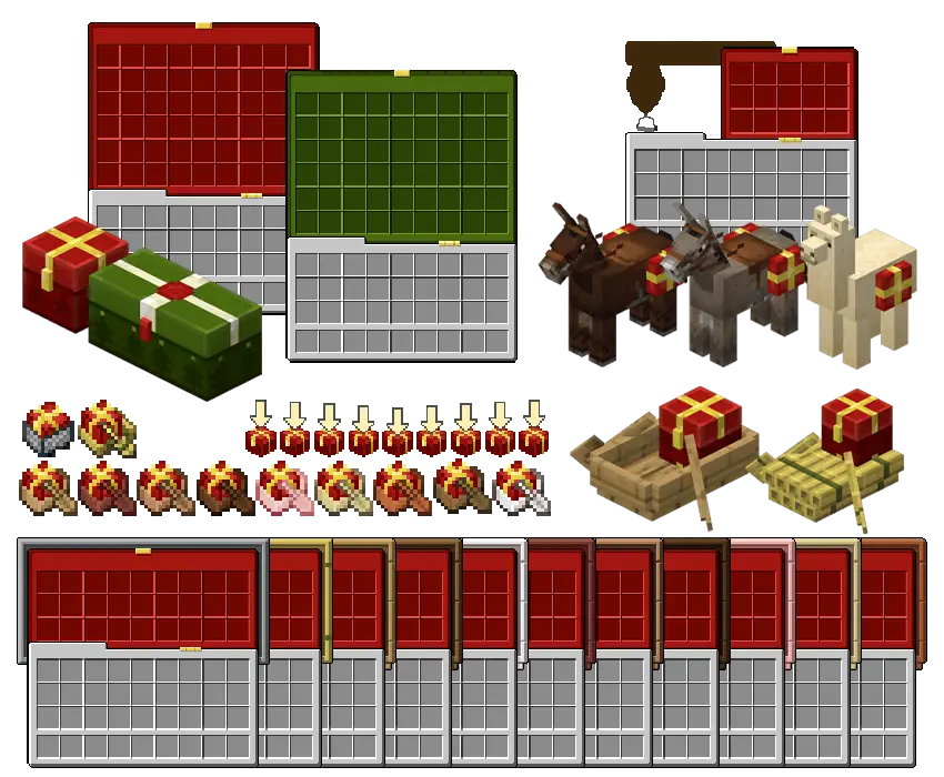 Spread the festive cheer with Christmas-themed chests and GUI textures! Requires Colourful Containers BE.