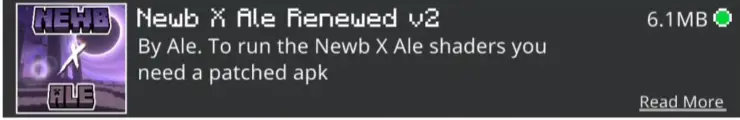 - Download the NEWB X ALE Shader file (.mcpack)