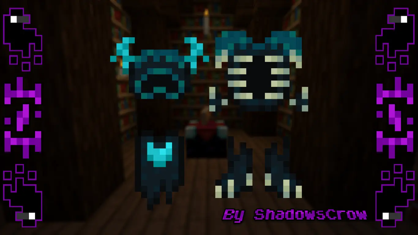 A Warden-themed texture pack that replaces Netherite armor visuals with Warden-styled armor for Java (ShadowsCrow) and a Bedrock port by Parzival_.